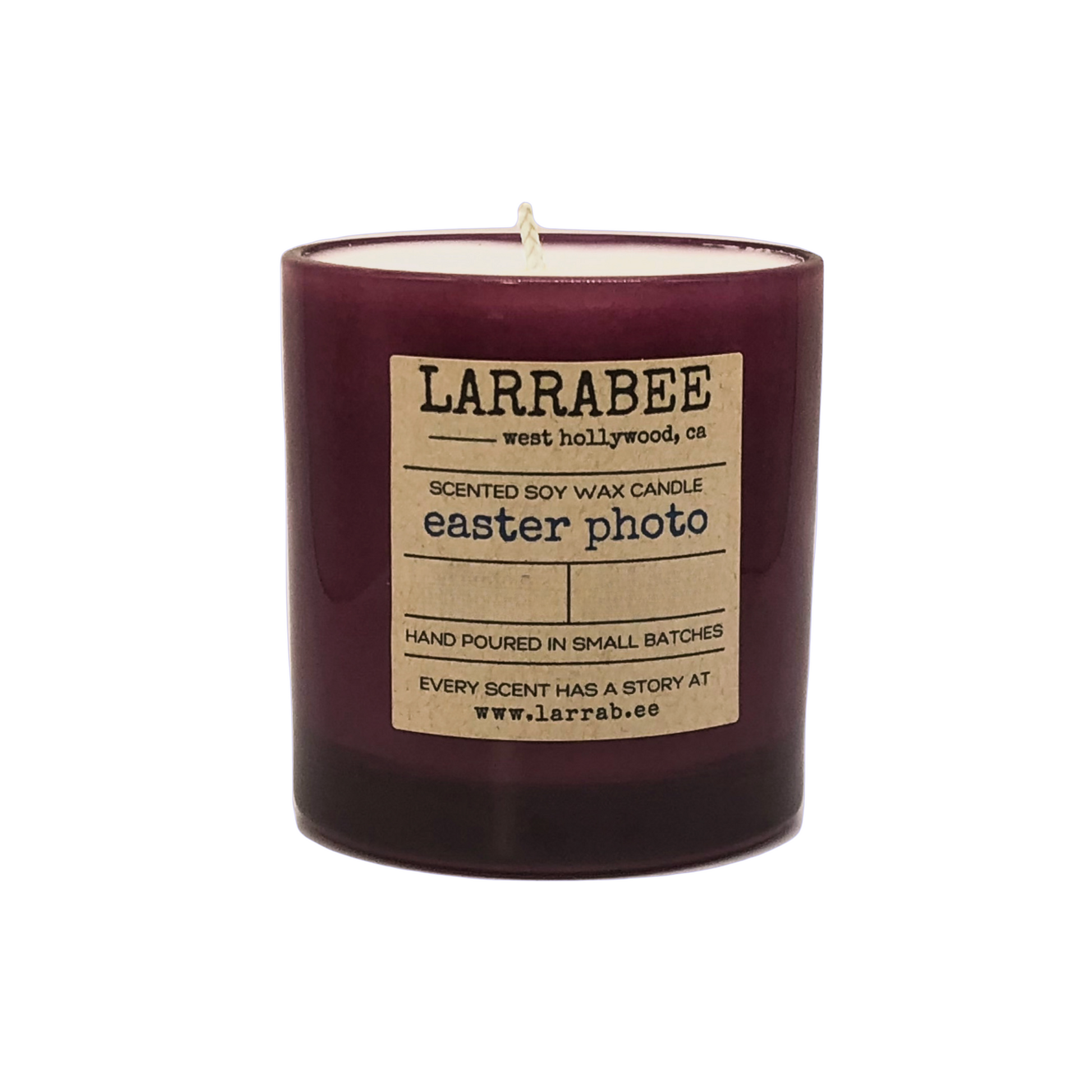 Each Easter Photo candle comes in a rich purple glass vessel filled with 7.5 ounces of premium soy wax, hand-poured for a clean, even burn. It's a perfect addition to your Easter celebration—offering a relaxing experience as you unwind from the holiday festivities. Though truthfully, this beautiful floral fragrance shines year-round whenever you need a breath of spring.